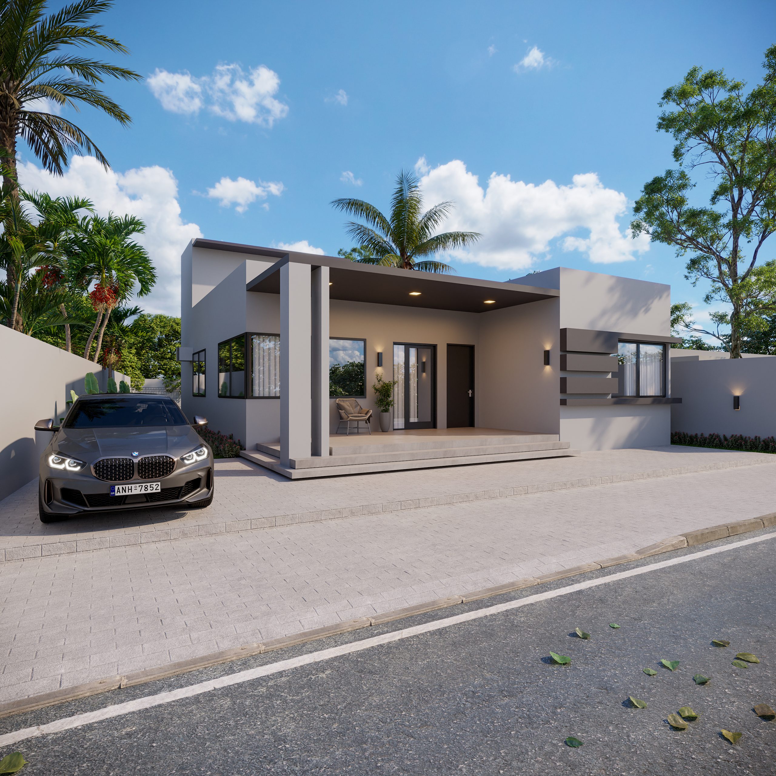 L’architecture contemporaine, aux lignes sobres et aux finitions en ciment béton gris, a été retenue pour sa durabilité, sa facilité d’entretien et sa cohérence économique. La réalisation est prévue par phases, avec la construction initiale du rez-de-chaussée et un accès toiture, suivie ultérieurement d’une extension verticale. Cette phasage n’exclut pas une étude globale dès l’origine : fondations, structure et plan d’étage ont été dimensionnés pour le projet final, et le permis de construire est déposé pour l’ensemble du programme, garantissant cohérence architecturale et optimisation de la valeur du bien dans le temps.